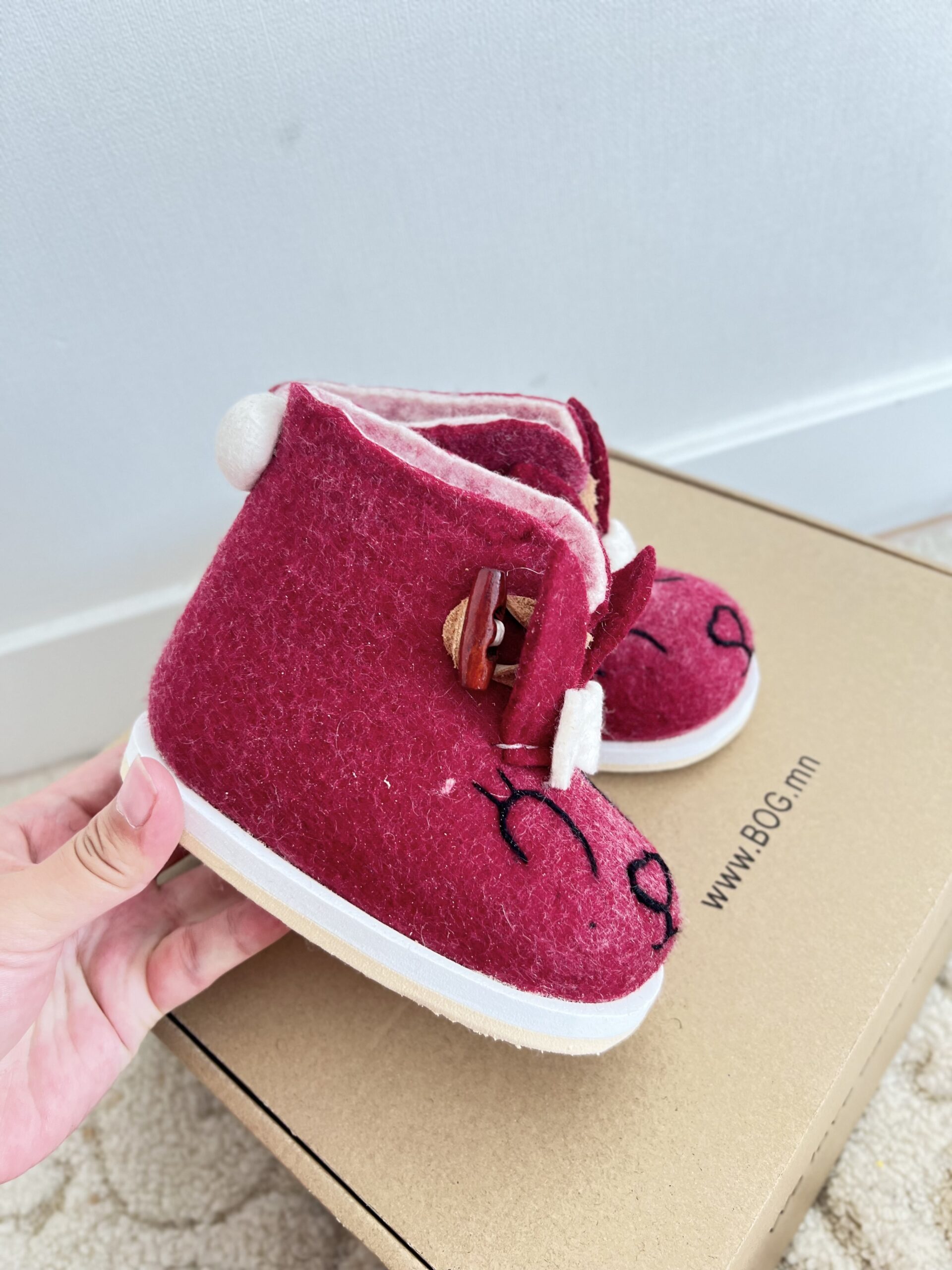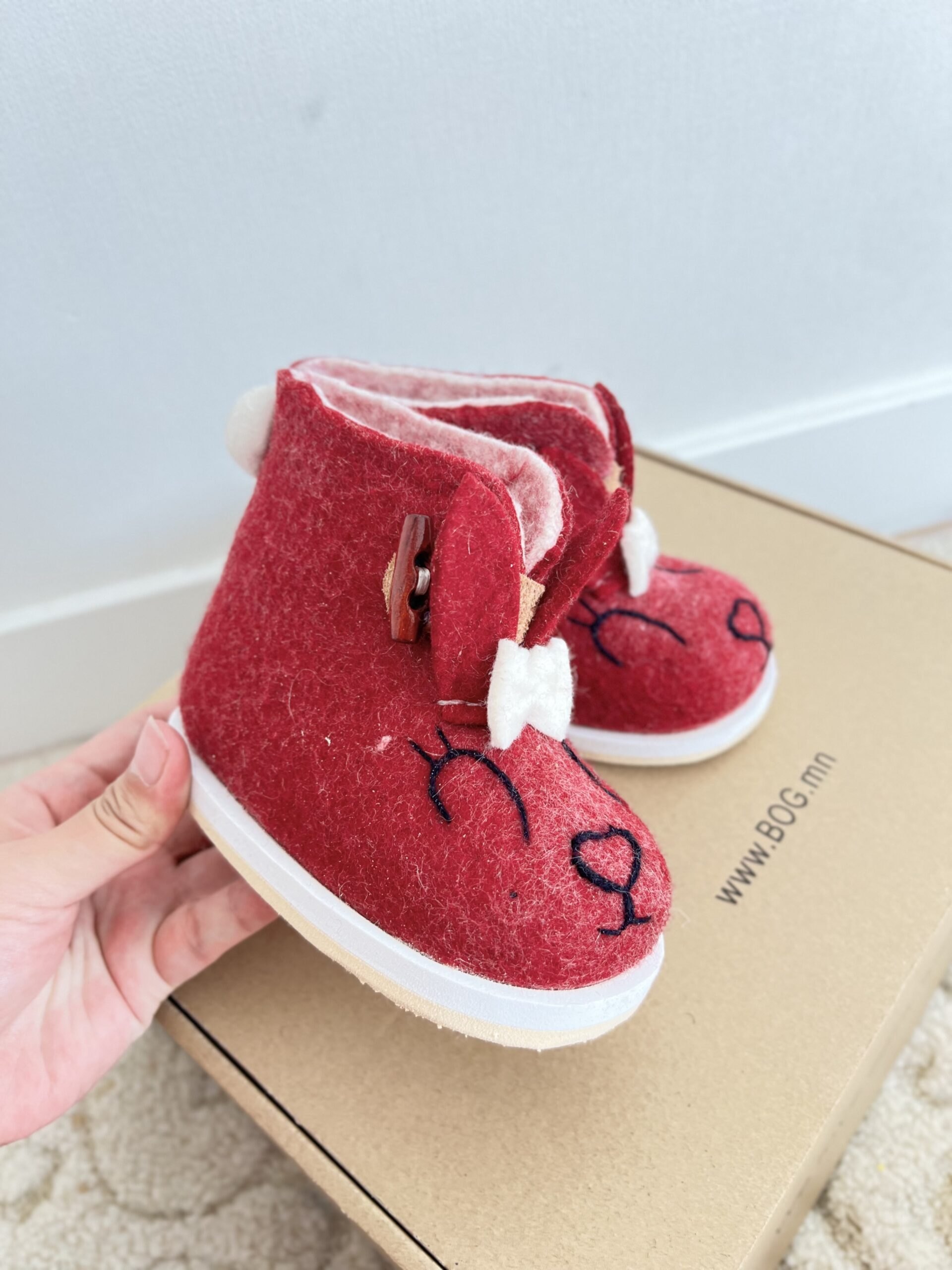 - Монгол Мерино хонины ноосоор уламжлалт аргаар оёдолгүй , гар аргаар хийсэн.