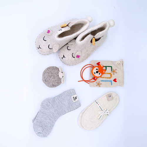 • Монгол Мерино хонины ноосоор уламжлалт аргаар оёдолгүй , гар аргаар хийсэн.