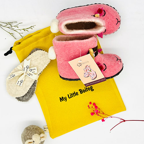 - Монгол Мерино хонины ноосоор уламжлалт аргаар оёдолгүй , гар аргаар хийсэн.